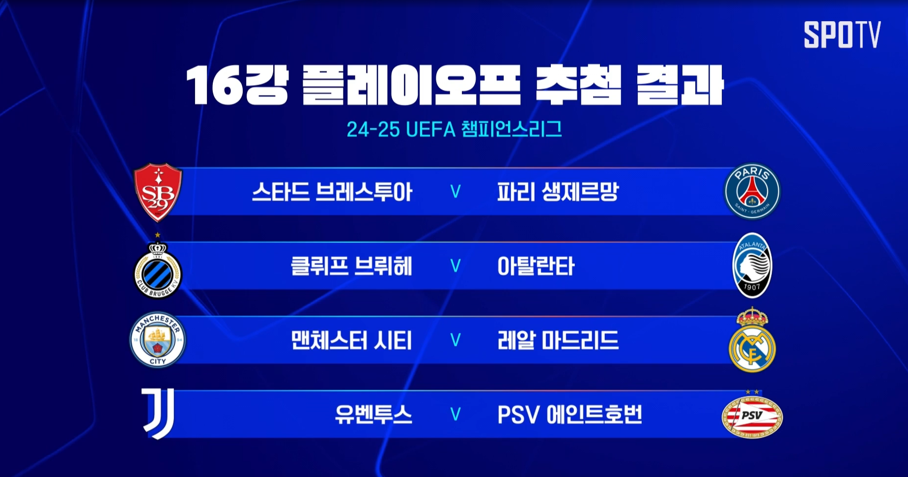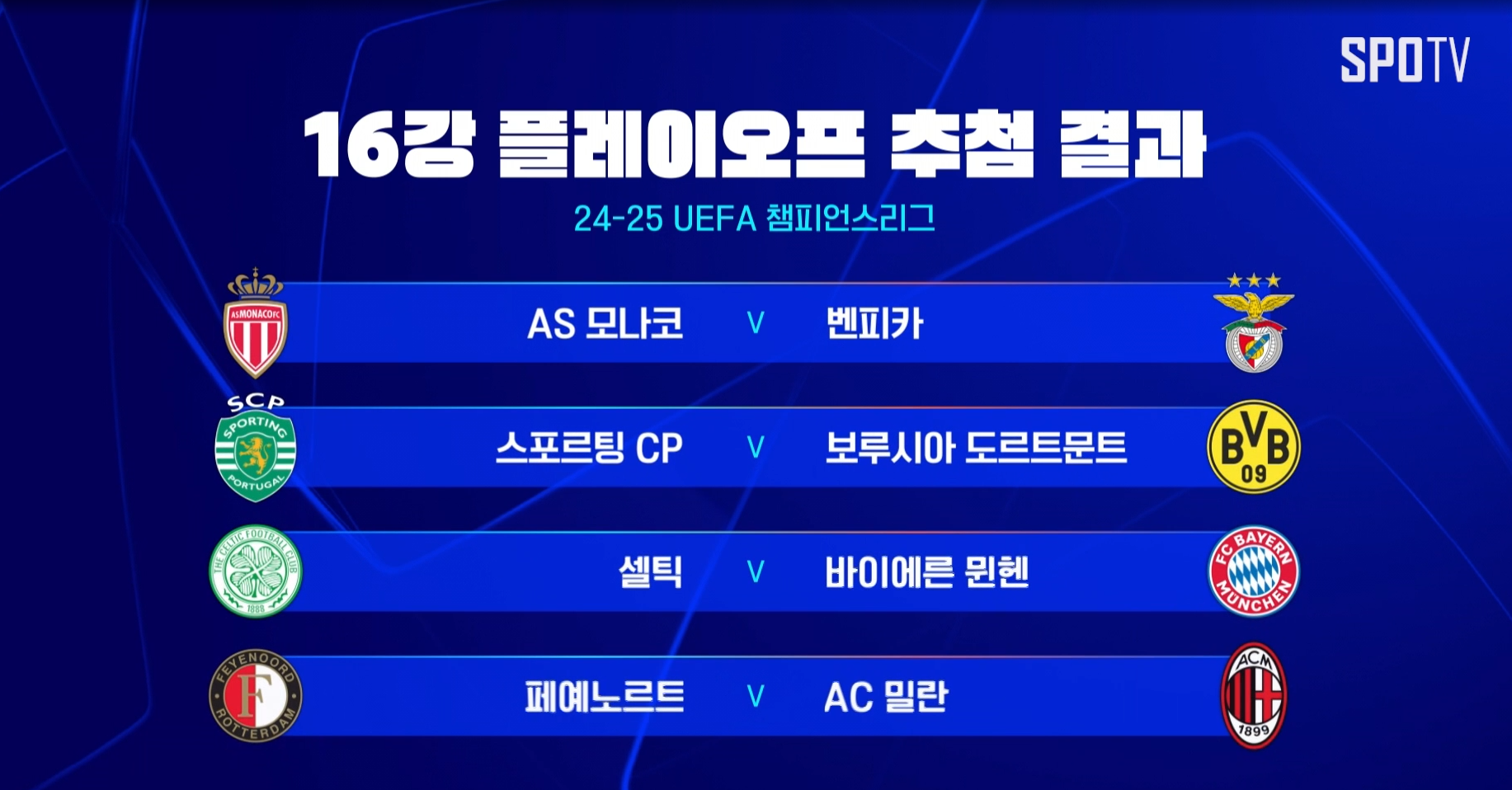 2025년 1월 31일(금요일) 20:00(한국시간), 챔피언스리그 16강 플레이오프(PO) 조추첨이 진행되었다. 이번 시즌부터 챔피언스리그 룰이 변경되면서 더욱 흥미로운 방식으로 대회가 진행되고 있다.