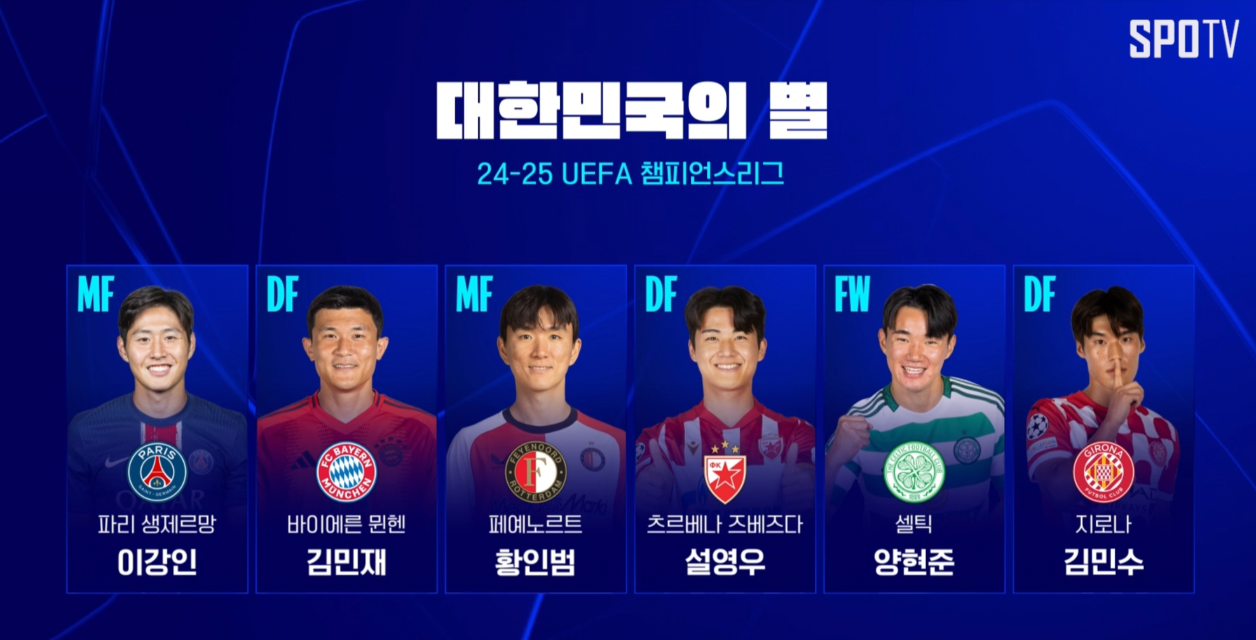 - 양현준 (셀틱, 스코틀랜드): 최근 폼이 올라오는 중으로 보이며 챔피언스리그에서도 기회를 얻을 것으로 보인다. 이번 바이에른 뮌헨과의 코리안더비를 기대해본다.